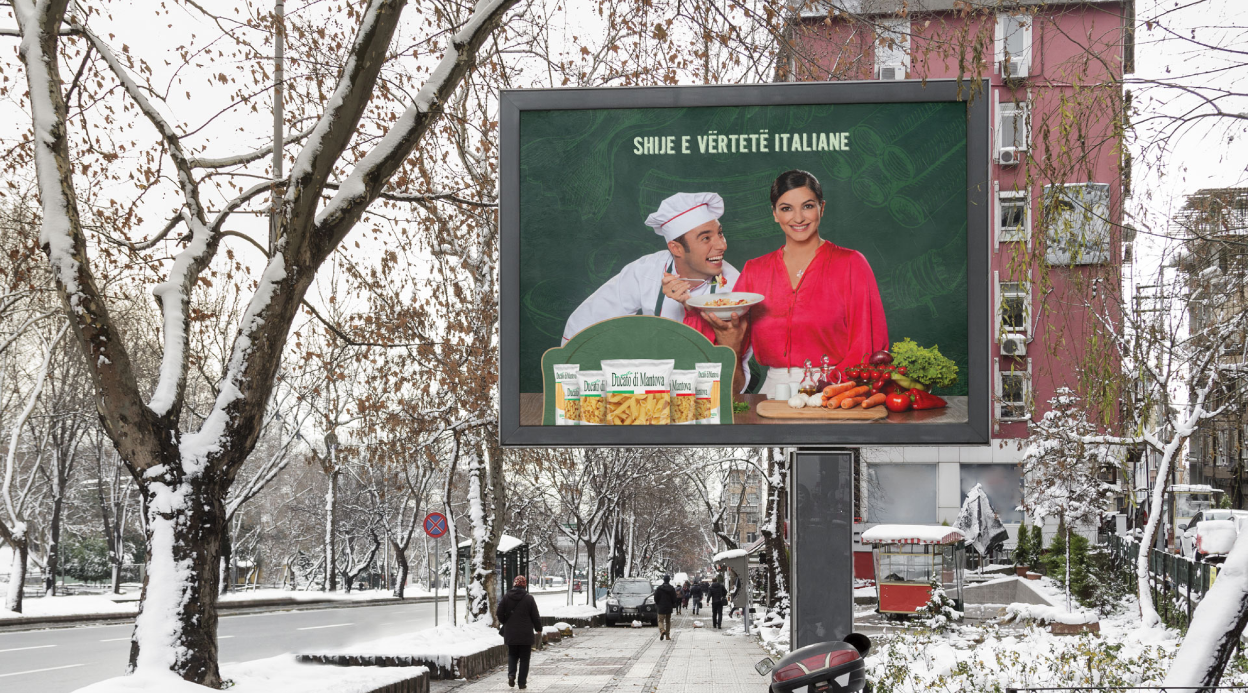 Featuring the famous Albanian actress Yllka Gashi and comedian Vedat Bajrami, the “Basta! Pasta!” campaign, is a short story developed to portray Ducato di Mantova pasta’s authentic Italian taste, inferred by its Italian characteristics: the Italian chef (a master in the kitchen); Italian language (of a beautiful, unique accent); and ultimately, Italian pasta - the essence of Italian cuisine.
