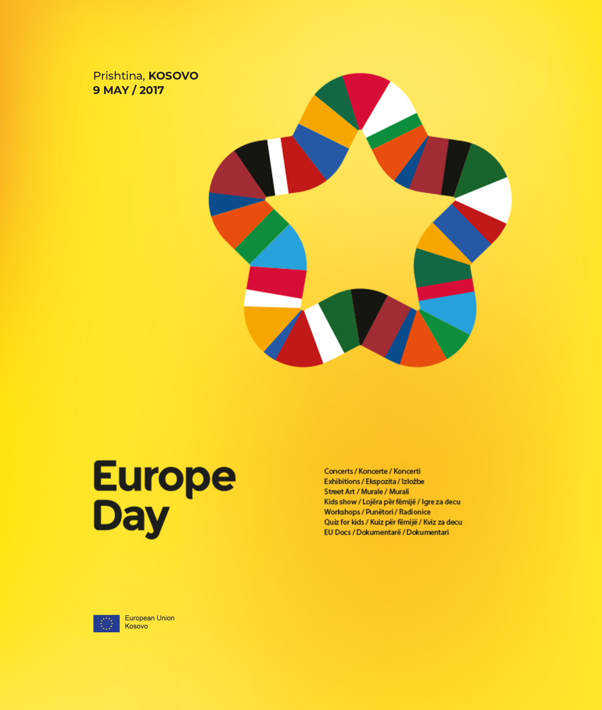 In collaboration with the EU Office in Kosovo and the Ministry of European Integration, Koperativa conceptualized and executed the 2017 Europe Day celebrations across Kosovo. With a focus on diversity as a core European Union value, the campaign’s unique branding and event design reflected inclusion and unity.