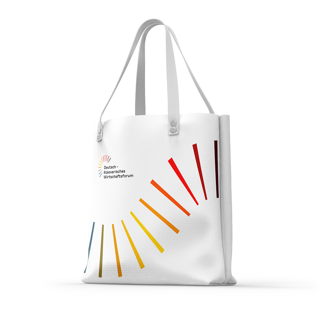 This visual became uniform to events, casual wear, totes, and office appliances that popularized and further broadened the presence of this cross-country collaboration after skillful curation of the digital brand identity of the German-Kosovar Economic Chamber.