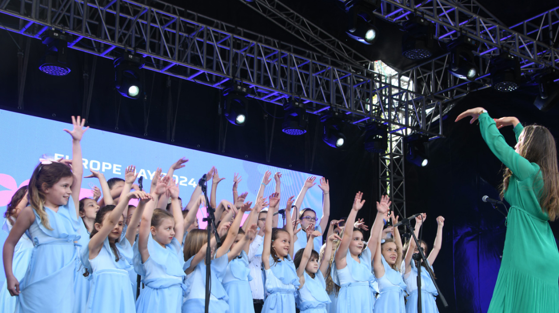 At the heart of the campaign was Prishtina’s Zahir Pajaziti Square, which transformed into a hub of European celebration. The flagship concert featured a powerful lineup, culminating in a performance by Ledri Vula. He took the stage following a performance by Offchestra, a set by DJ Adrian Berisha, the Okarina Children’s Choir, and a live jazz quintet, turning the square into a vibrant, pan-European block party. Additional cultural programming included the opening of the Chopin Piano Fest, an acclaimed piano masterclass by Artem Yasynskyy, and public exhibitions of student artwork exploring EU themes. In Prizren, families gathered along the Lumbardhi Kej for Europe-themed games and interactive installations. In North Mitrovica, concerts and a children’s art exhibition brought the festivities to life for a new audience.